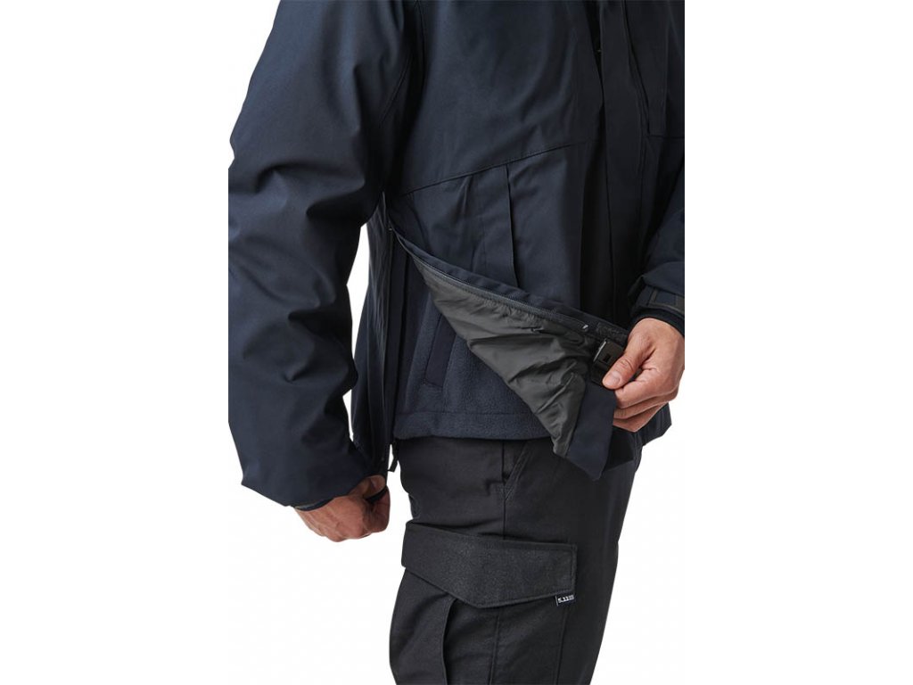 Kompromis nepřichází v úvahu, když jsou ohroženy životy a bezpečnost. Profesionálové potřebují to nejlepší, když pracují v nejhorším počasí a podmínkách. Proto jsme představili naši bundu 5-in-1 2.0. Je o 8 % lehčí než předchozí generace a mnohem pružnější díky vnějšímu plášti z mechanicky strečového polyesteru. Plně utěsněná 10K voděodolná a 10K prodyšná tkanina s DWR poskytuje odolnost vůči patogenům přenášeným krví*. Když prší, zakryjte se odnímatelnou kapucí, kterou lze srolovat do límce nebo uložit do zadní kapsy. Nový systém Quixip® na bocích nabízí lepší ventilaci a rychlý přístup ke střelné zbrani. Odnímatelná vnitřní vložka dvoudílného setu má odepínací rukávy a boční zip, které poskytují ještě větší všestrannost. Tech fleecová konstrukce zajišťuje roky provozu a ve spojení s utahovací šňůrou na lemu udržuje teplo. Přidejte pár kapes na dokumenty na obou vrstvách a máte odpověď 5.11® na těžké situace.