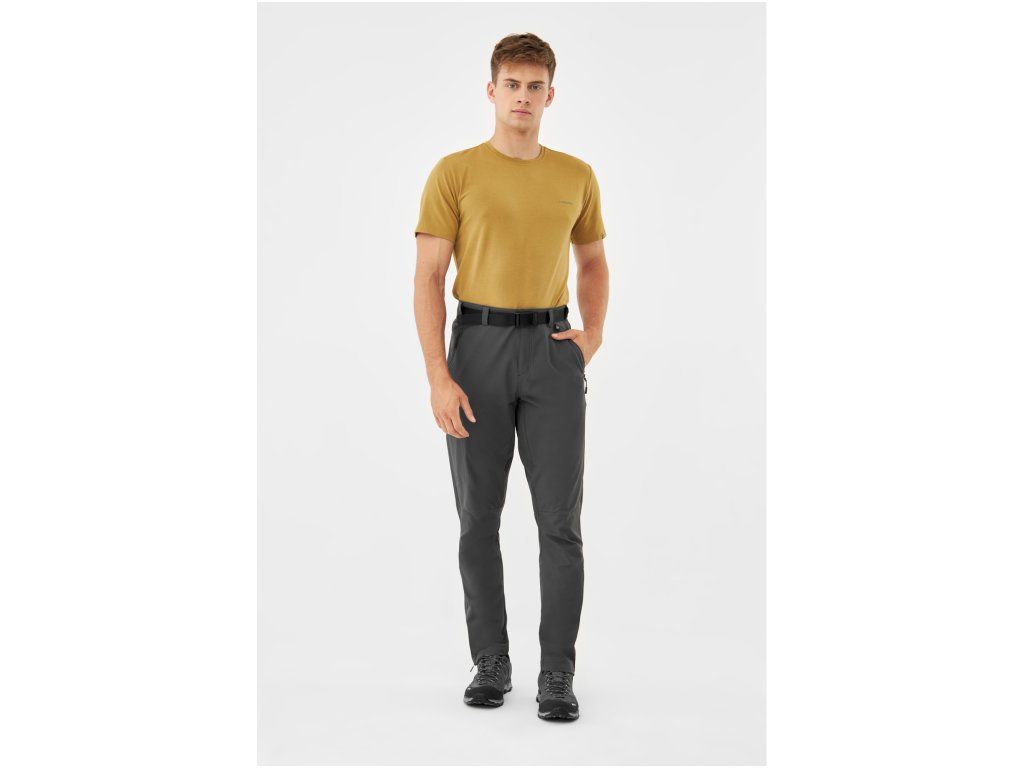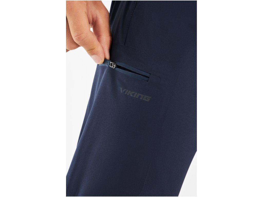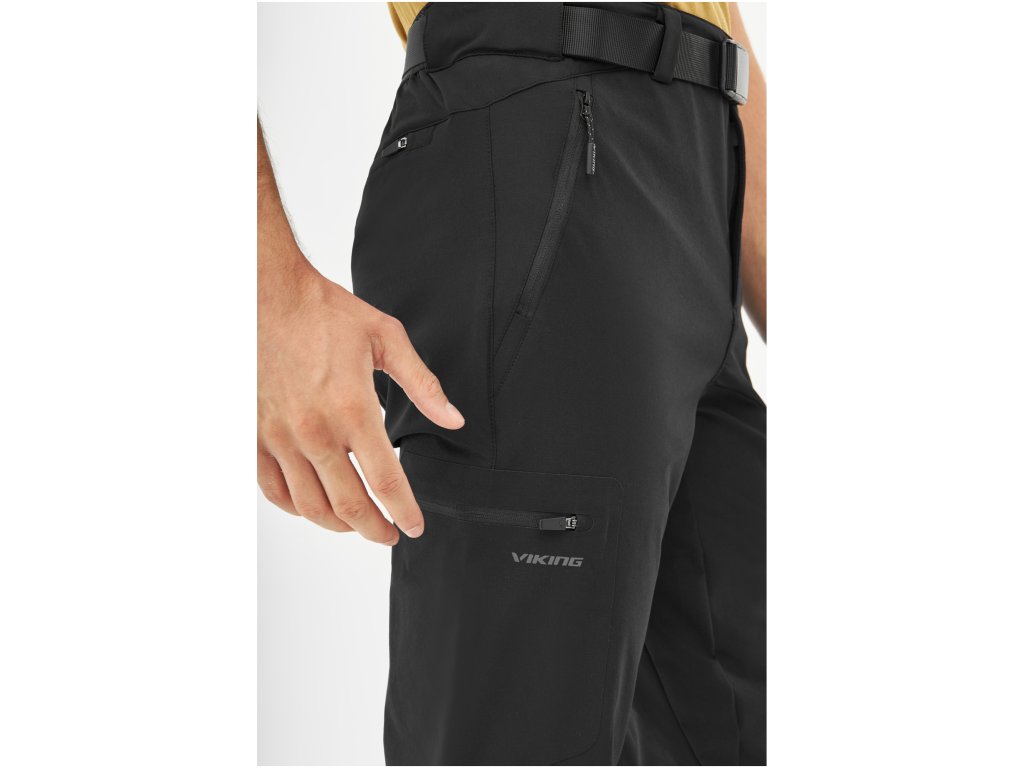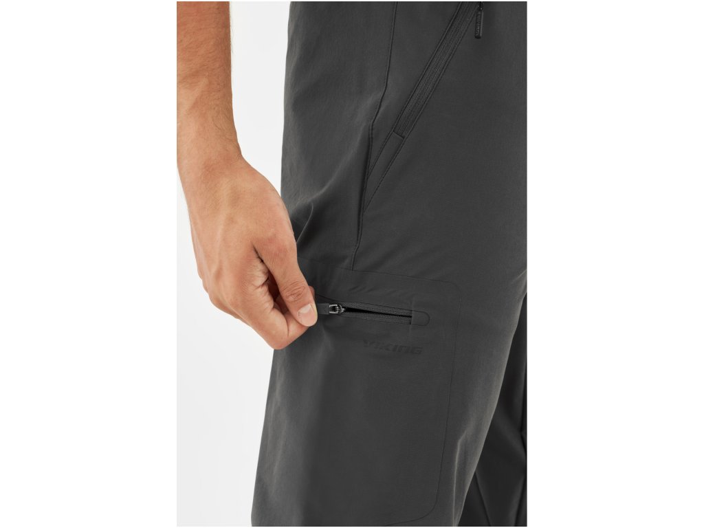 Pružné, pánské trekové kalhoty ExpanderKalhoty Expander značky Viking jsou návrhem pro lidi, kteří hledají extrémně pružné, třísezónní trekové kalhoty. Díky použití čtyřsměrně strečových materiálů a lehkému a ergonomickému designu jsou kalhoty Expander mimořádně pohodlné, zaručují velkou volnost pohybu a přizpůsobí se postavě při fyzické námaze. Díky gramáži materiálu - 170 g/m2 jsou kalhoty vhodné pro podzimní i jarní turistiku, ale také pro chladnější letní dny. Profilovaná kolena navíc zvyšují komfort používání. Za pozornost stojí také elastický pas se širokou gumou v zadní části, díky kterému kalhoty dokonale přiléhají k postavě, aniž by tlačily v pase a způsobovaly nepohodlí. Součástí sady je také elastický pásek, který lze použít i s dalšími trekovými kalhotami. Kalhoty Expander mají až 4 kapsy na zip - dvě přední, jednu na hýždích a jednu na stehnech. Kapsa na stehně je vyrobena technikou svařování, díky čemuž nevznikají lepené švy. Do stehenní kapsy se snadno vejde mobilní telefon. V dolní části nohavic jsou zipy, pod kterými je další záhyb materiálu, takže kalhoty Expander lze nosit přes trekovou obuv s vysokým svrškem. Kalhoty jsou opatřeny ekologickou povrchovou úpravou DWR v technologii Bionic Finish Eco (bez produkce škodlivých fluorovaných uhlovodíků). Zipy použité v kalhotách jsou vysoce kvalitní zipy SBS. Pro zvýšení bezpečnosti jsou kalhoty navíc vybaveny reflexními prvky.Doplňkové parametry