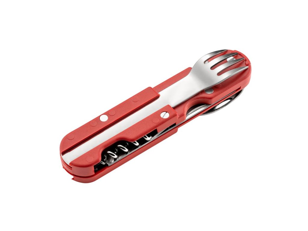 Čepel z tvrzené nerezové oceli je účinná jak u stolu, tak pro veškeré outdoorové použití. Chytrá ergonomická rukojeť z lehkého, nárazuvzdorného materiálu ABS nabízí snadný úchop a umožňuje umístit vidličku a lžíci na každou stranu nože v důmyslném systému patentovaných skluzů.