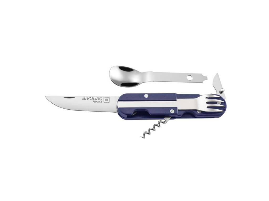 - Nůž Bivouac® je synonymem praktičnosti a vyznačuje se patentovaným posuvným systémem, který umožňuje snadno integrovat lžíci a vidličku na obě strany nože. Nůž Bivouac® byl navržen na základě konceptu "vše v jednom" a při jeho vývoji byly použity techniky své doby, tedy hliníkové a dřevěné modely. Dodnes si zachovává znaky svého původu. Design "přímo k věci" a jednoduchá mechanika potvrzují svou nadčasovost díky úspěšným prodejům po celou dobu jeho historie, a je to již 30 let. Láska k Bivouacu® nezreziví stejně jako ocel jeho čepele!
