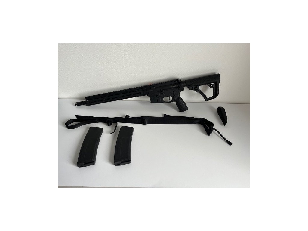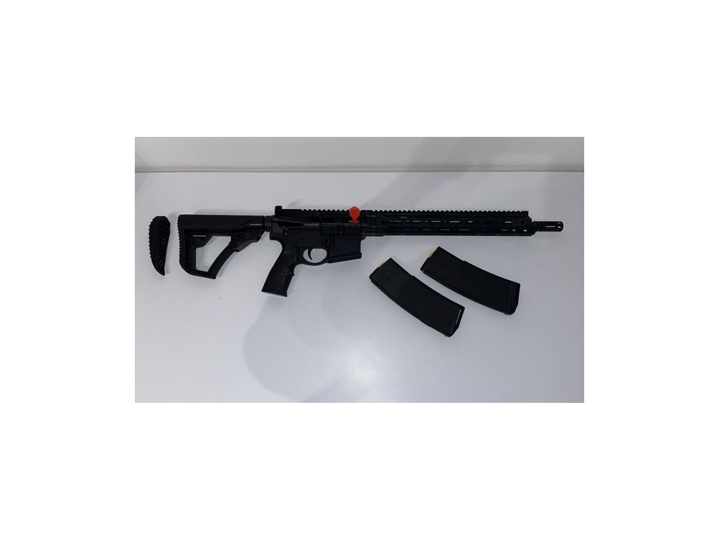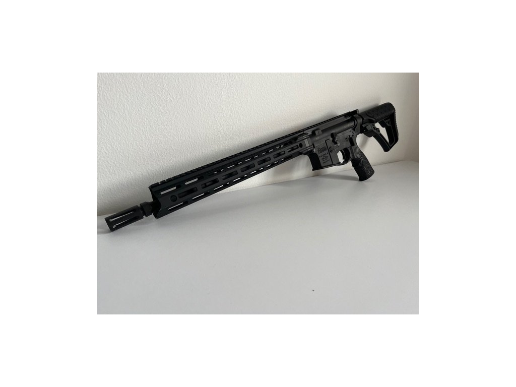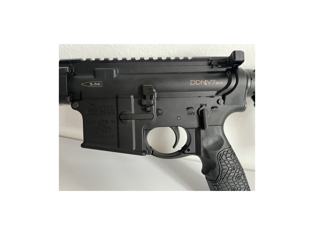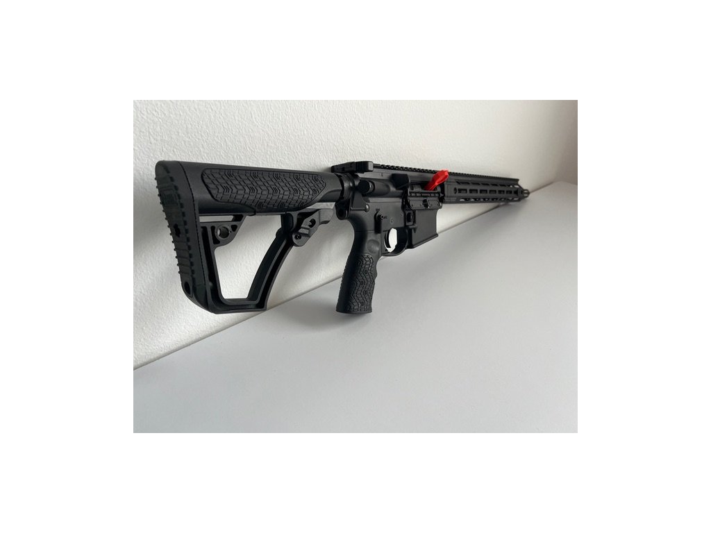 Puška AR15 DDM4 V7 SLW od renomováného amerického výrobce Daniel Defense, v ráži .223 REM/5,56 NATO se za studena kovanou hlavní o délce 14,5" se stoupáním 1:7 (ideální pro těžší střely), profil Lightwight (lehká). Úzké Free-Float MLOK předpažbí s Picatinny railem po celé délce horní hrany se 4 QD očky je patentovaným systémem 4 šroubů upevněno k matici hlavně.