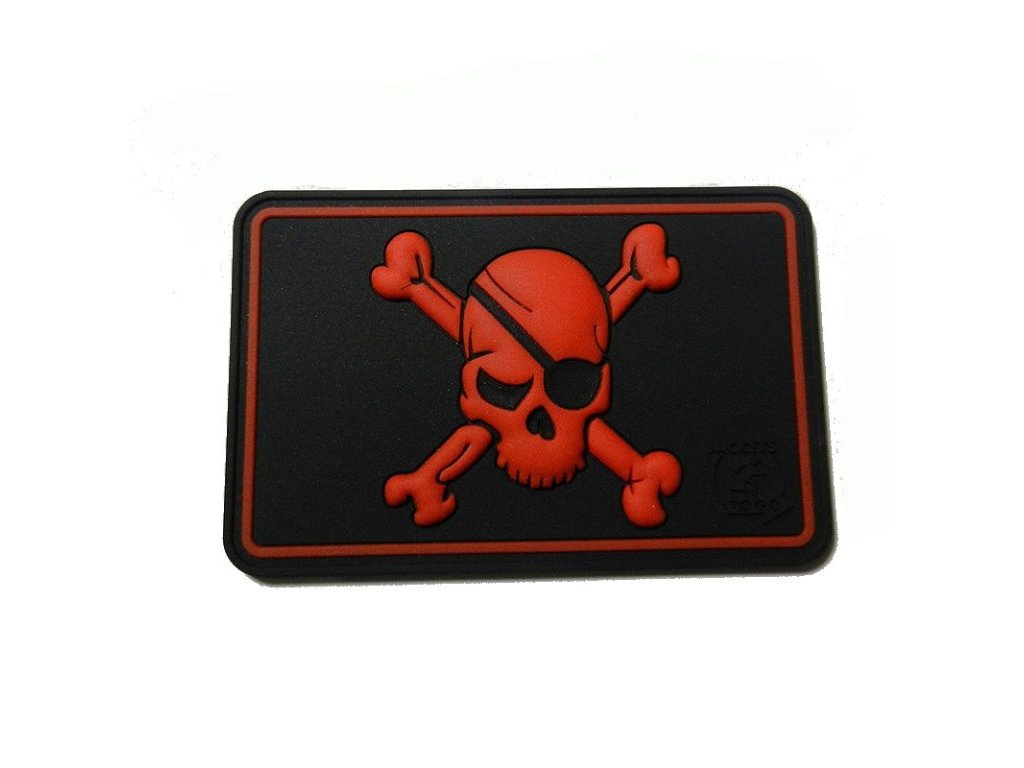 Plastová obdélníková nášivka na suchý zip, na které je pirátská lebka s páskou přes oko a zkřížené hnáty. Nášivka se bude vyjímat na jakémkoli velcro panelu, ať už na vaší bundě, mikině, čepici nebo tašce či batohu. Nášivka je z odolného plastu, dobře se tedy udržuje čistá - stačí ji otřít vlhkým hadříkem.