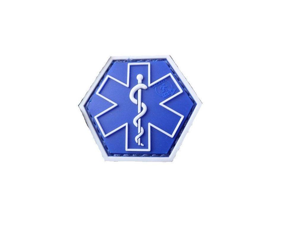 Plastová nášivka označující zdravotníka EMS (Emergency Medical Services = zdravotnická záchranná služba).