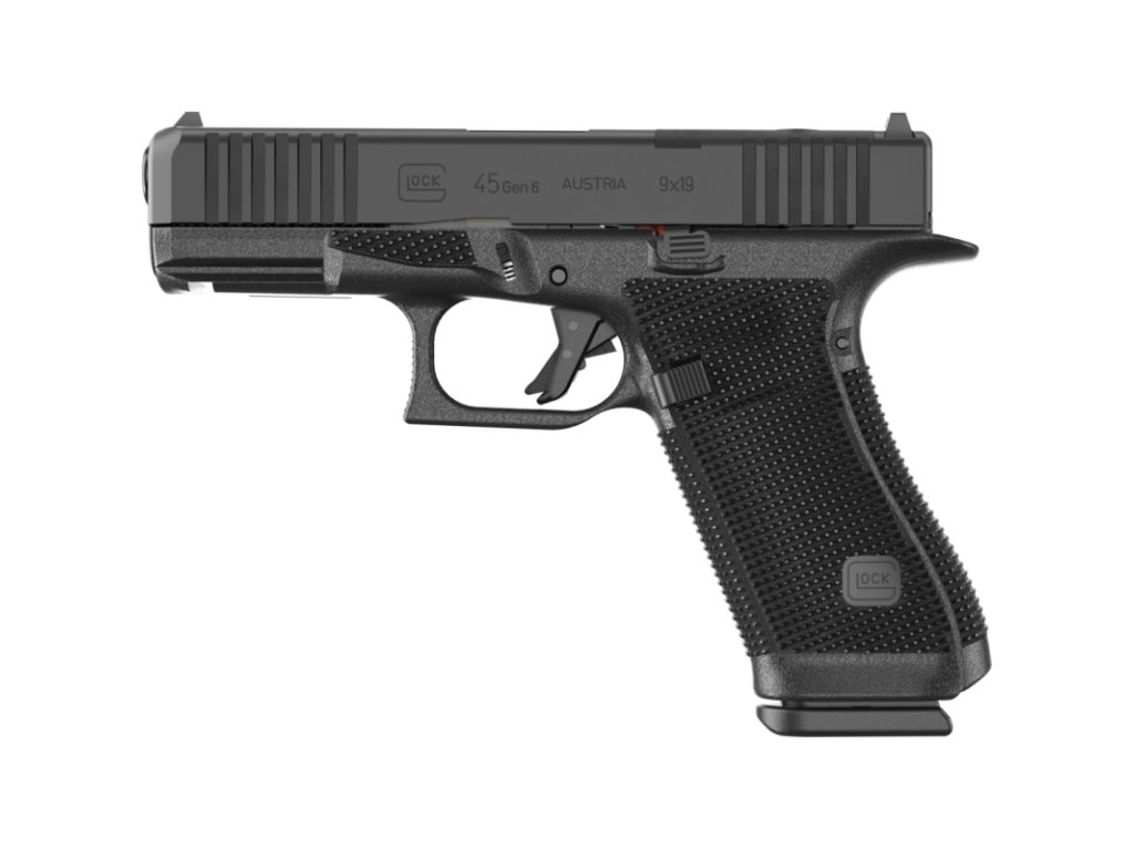 GLOCK 45 Gen6 kombinuje ovladatelnost full-size pistole s kompaktním výkonem. Konstrukce Gen6 zahrnuje vylepšenou ergonomii, zdokonalenou texturu rukojeti a optic ready provedení, díky čemuž nabízí vysokou úroveň kontroly, přizpůsobivosti a spolehlivosti pro služební i každodenní použití. Konstrukce modelu G45 využívá kompaktní závěr v kombinaci s full-size rámem s kapacitou zásobníku 17 nábojů.