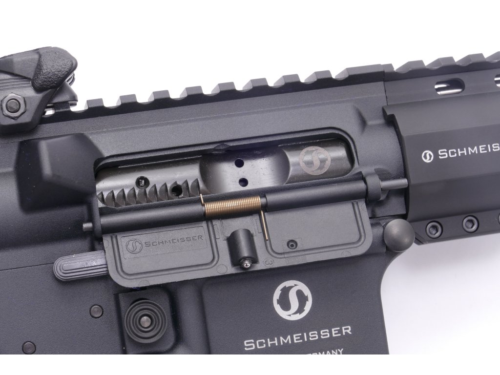 Oboustranně řešená je i zvětšená natahovací páka, která je vybavena drážkami pro odvod spalin, které rovněž oceníte zejména při použití tlumiče výstřelu, ale i pokud jste levostranní střelci. Natahovací páka je rovněž z vlastní produkce Schmeisser.