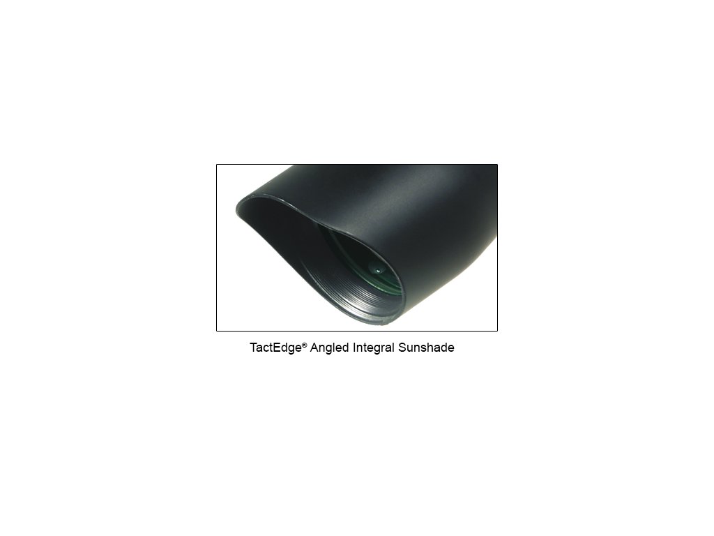 - Integrovaná taktická sluneční clona, součástí dodávky hliníkové kroužky v optimální "výšce" vůči montáži na rail, krytky