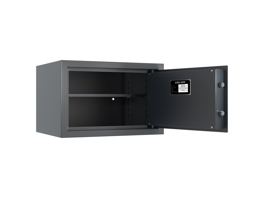 Hlavní výhody: Certifikovaný trezorový zámek třídy A podle ČSN EN 1300 Bezpečnostní třída S1 (ČSN-1445+A1:2024) Splňuje podmínku minimálně 15 RU podle normy ČSN EN 1143-1:2020 Možnost úschovy také zbraní a munice podle č. 119/2002 Sb. Jednoplášťový nábytkový trezor Dodáváno s 1 vyjímatelnou policí Dva otvory pro ukotvení na spodní a zadní straně Jednoplášťový nábytkový trezor Praktik 30 nabízí dostatek prostoru pro důležité doklady, úřední dokumenty nebo cestovní doklady. Certifikovaný zámek třídy A (ČSN EN 1300) a bezpečnostní třída S1 (ČSN-1445+A1:2024) zajistí, že k uloženým věcem budete mít přístup pouze vy. Splňuje podmínku minimálně 15 RU podle normy ČSN EN 1143-1:2020. V trezoru je možné uchovávat také zbraně nebo munici. Dodáváno s 1 vyjímatelnou policí. Trezor lze jednoduše ukotvit pomocí dvou otvorů v zadní nebo spodní stěně za použití přiloženého kotevního materiálu.Doplňkové parametry