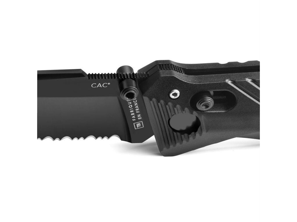 - Bezpečný mechanismus aretace - AXIS® - Společnost TB do nože C.A.C.® integrovala také bezpečný mechanismus aretace čepele pomocí pohyblivé osy. Tento mechanismus je mimořádně robustní a zajišťuje bezchybné zajištění čepele v otevřené poloze. Nůž C.A.C.® byl v roce 2017 oficiálně vybrán francouzskou armádou pro svůj výkon, robustnost, kvalitu a cenu.