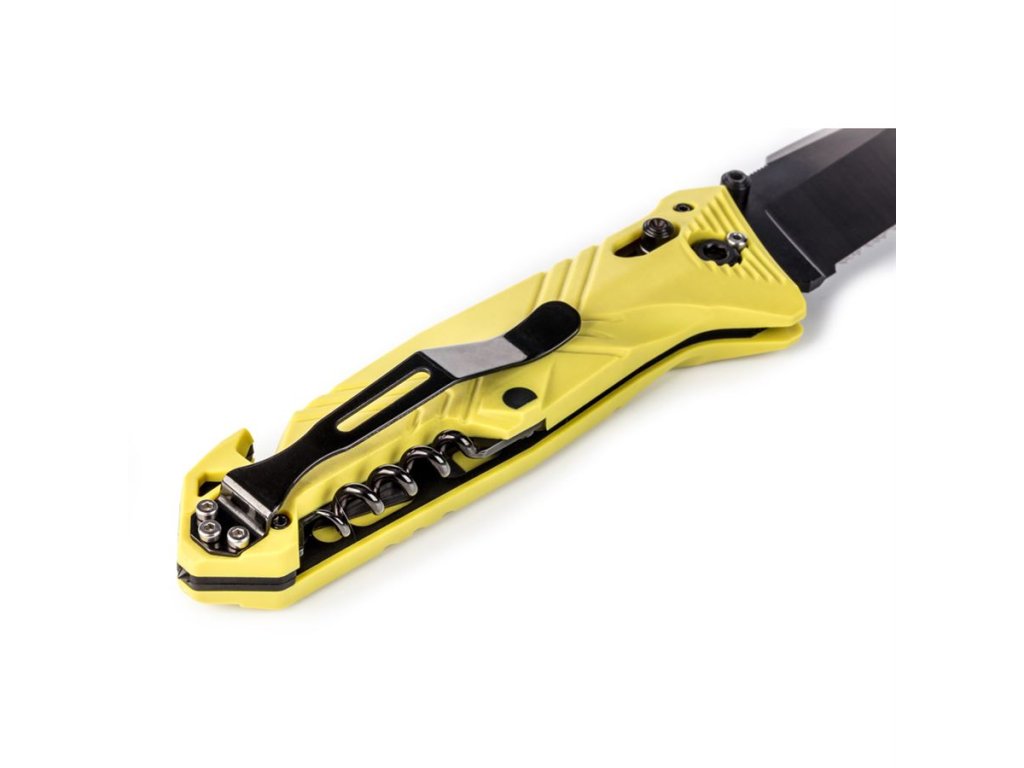 - Tato verze nože CAC je vybavena řezákem na řemeny a má vývrtku.