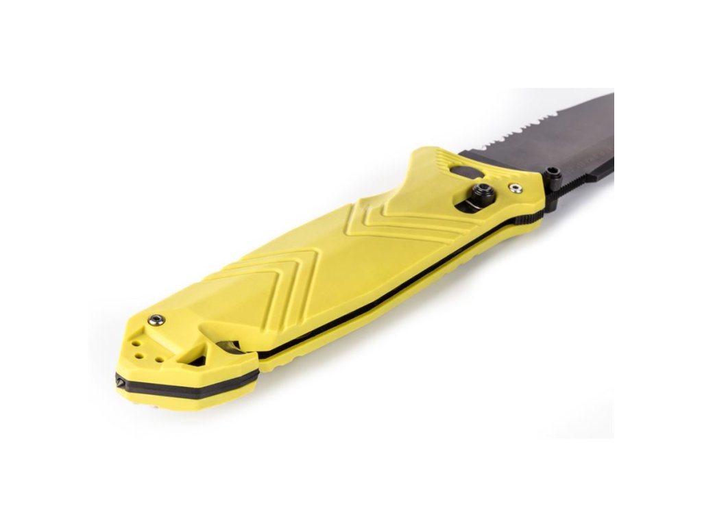 - Řezák popruhů: K řezání bezpečnostních pásů nebo paracordu